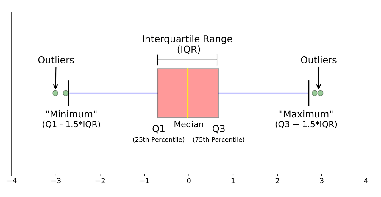 ※이상치는 주관적인 값이므로 데이터의 삭제 여부는 분석가가 해야 할 일이다. 다만 도메인과 비즈니스 맥락에 따라 기준이 달라지며 삭제할 경우 데이터의 품질이 좋아질수 있으나 그와 동시에 정보 손실이 동반되므로 이상치 처리에 주의해야 한다.